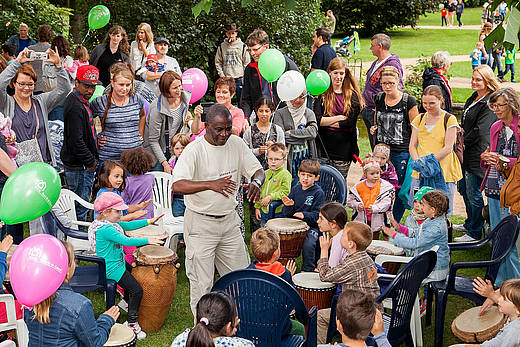 Der Radiotag ganz im Zeichen der Bielefelder Kinderkultur, moderiert von Andreas Liebold, der sonst alljährlich den „analogen“ Wackelpeter als Moderator begleitet, hatte außerdem einen Trommel-Workshop im Gepäck, Beiträge der Handwerkskammer mit beispielsweise einer Bauanleitung für ein Futterhäuschen, einem Puppentheater und mehr. Andreas Liebold hatte Kinderreporter Luka an seiner Seite, der die Co-Moderation übernahm.