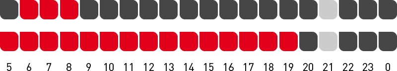 - Vom täglichen Programm werden bis zu 21 Stunden übernommen.